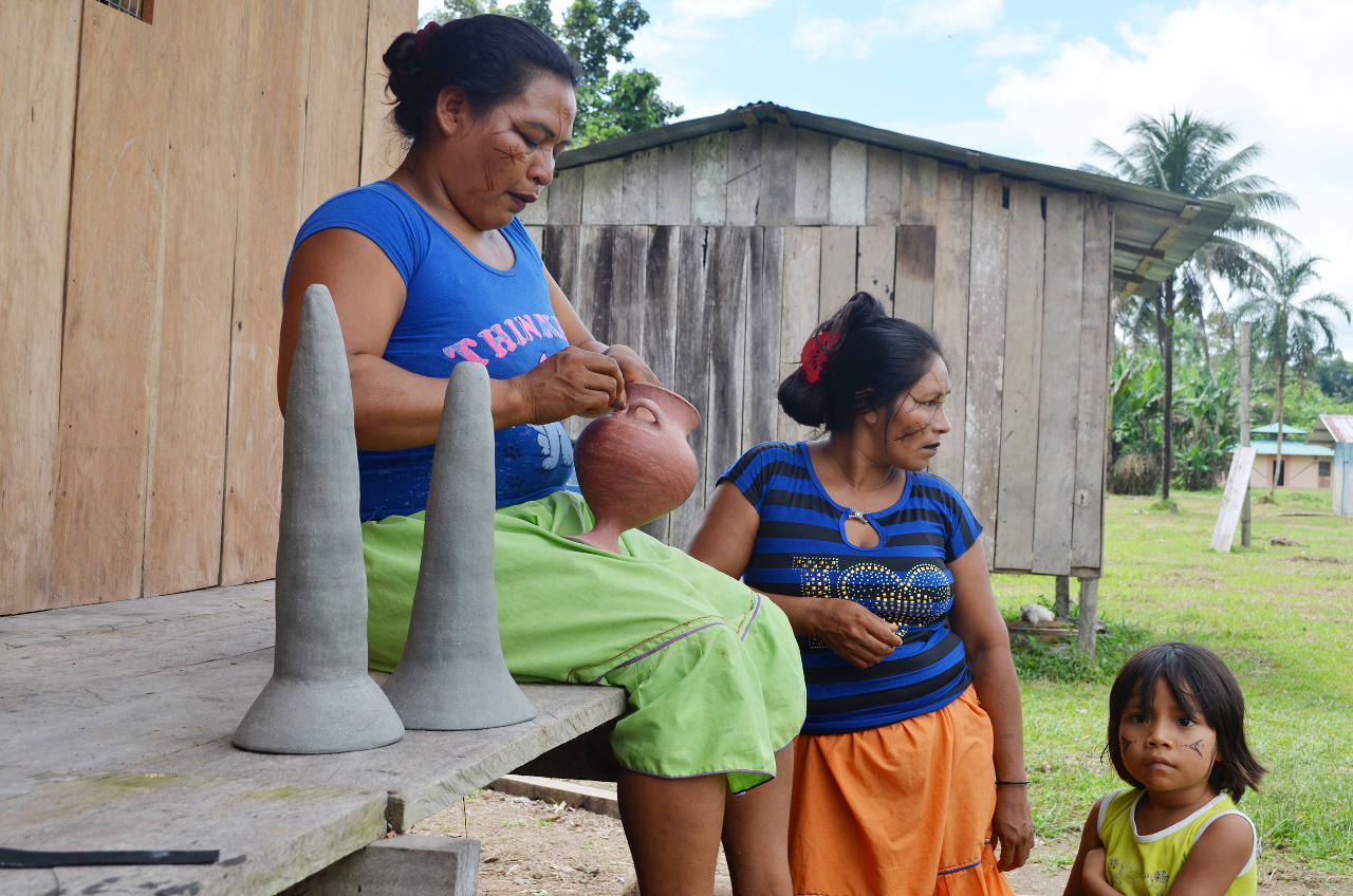 Como la alfarería ocupa un lugar central en nuestra cultura mientras nuestros mayores van envejeciendo, nos urgió pensar en algunas herramientas que nos permitan mantener viva y transmitir nuestras técnicas ancestrales. Mediante el uso de tecnologías, estamos plasmando los conocimientos sagrados y prácticas culturales de nuestros abuelos en soportes digitales. También, con el programa de Prácticas Propias apoyado por la Alianza Ceibo hemos empezado a recuperar la elaboración de cerámicas con las mujeres de la comunidad Secoya Remolino.