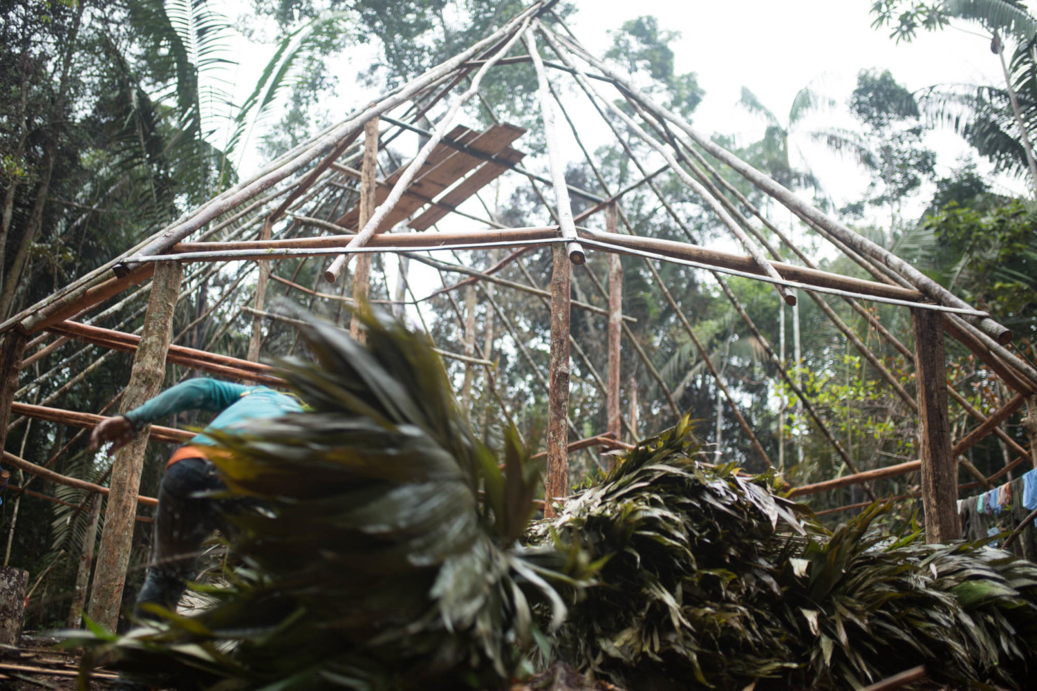 Entonces los jóvenes de Sinangoe crecieron pero no tenían conocimiento del yagé hasta cuando inició el proceso de lucha. Con la guardia, fuimos al territorio de mi papá y hemos tomado yagé. Hemos ido al territorio de los Siona y allí también hemos tomado yagé. Desde allí, algunos jóvenes aprendieron a preparar y siguieron tomando con otros mayores, nuestros abuelos, conocedores de la sabiduría ancestral. Empezaron a construir la casa de ceremonia en Sinangoe este año, cuando la comunidad empezó a pelear por la defensa del territorio, con la visión de adjudicación del territorio. Es algo que va surgiendo: primero la lucha y después la recuperación y ahora continúa.