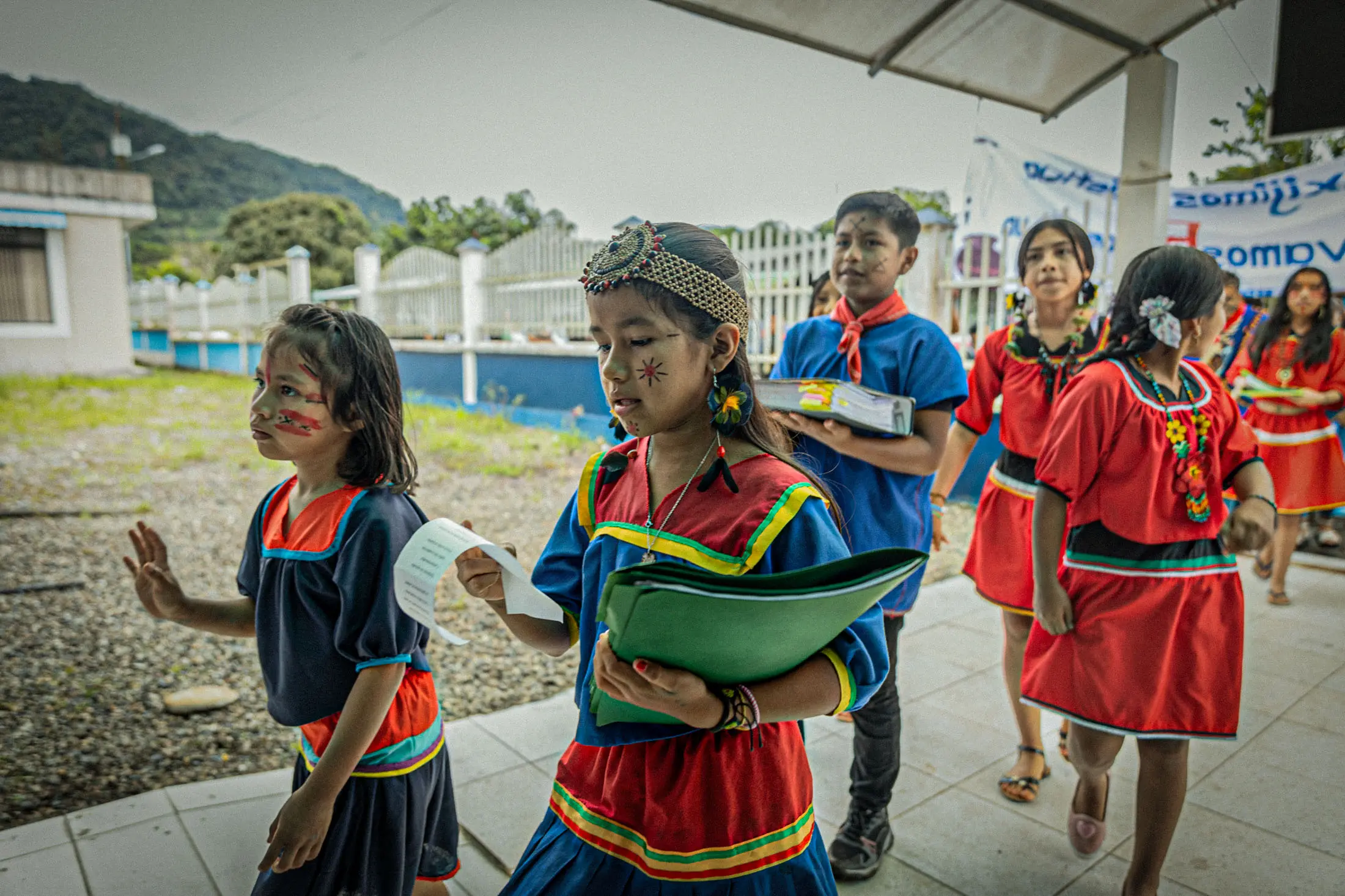Recuerdo la educación de mi infancia hace 26 años atrás estudié en la escuela Río Cofanes en la comunidad  A’i  Cofán de Sinangoe. Vivíamos a 5 kilómetros de la comunidad, a riberas del río Aguarico en la bocana del río Candue. Todas las mañanas mi mamá se despertaba a las 3 de la mañana para hacer el desayuno y mandarnos a la escuela. Nosotros eramos 3 hermanos 2  menores a mi,  que  estudiamos, salíamos de casa a las 5am para llegar a clases a las 7.30 am. Llegábamos cansados sin poder respirar bien del cansancio pero con muchas ganas de aprender, aun con el uniforme sucio porque a veces nos tocaba un mal tiempo.