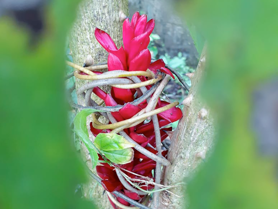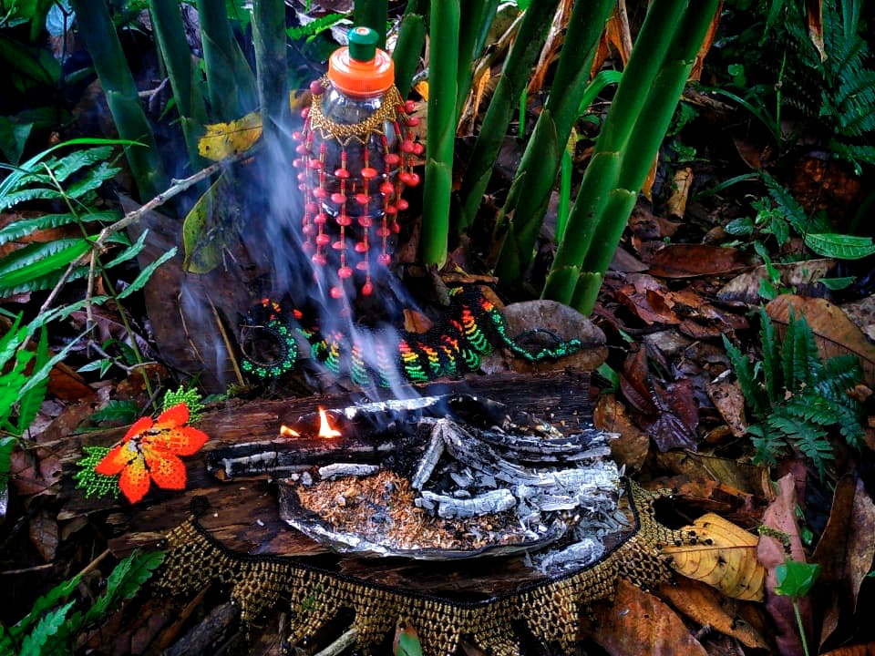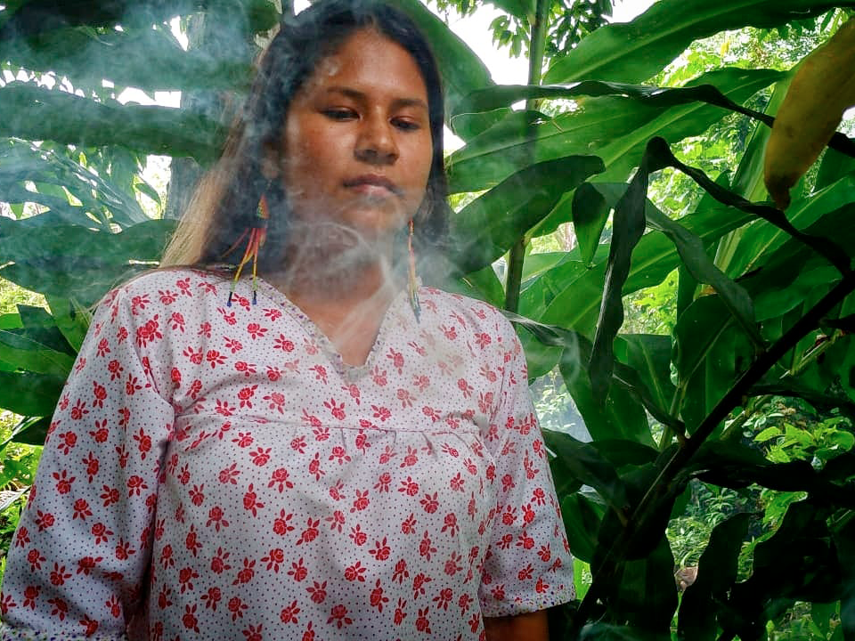 “Durante el tiempo de colonización hubo muchos cambios en los territorios indígenas, la comunidad Siona de Putumayo ubicada en la frontera de Ecuador y Colombia está siendo afectada por la petrolera. Nuestra fotohistoria habla de la contaminación, sobre cómo las empresas han afectado a nuestro resguardo y lo que nosotros hacemos para enfrentar eso. Queremos presentar fotografías turbias que muestran cómo se pone nuestro resguardo cuando se presenta este tipo de cosas, que contaminan y destruyen el monte. Dentro de la cultura Siona (Ziobain) encontramos que la espiritualidad es muy importante. Nosotros manejamos nuestra medicina espiritual, guiados por nuestros mayores, por eso en nuestra historia queremos mostrar que nos mantiene fuertes y nos ayuda a conectarnos con la naturaleza y los espíritus para lograr un mejor camino”, Mildrey Paz, Brigitte Piaguaje, Andrea Ríos, Jennifer Yurani.