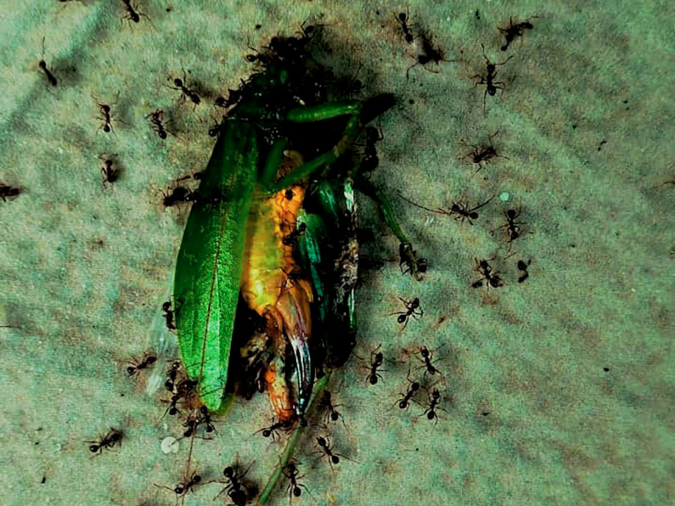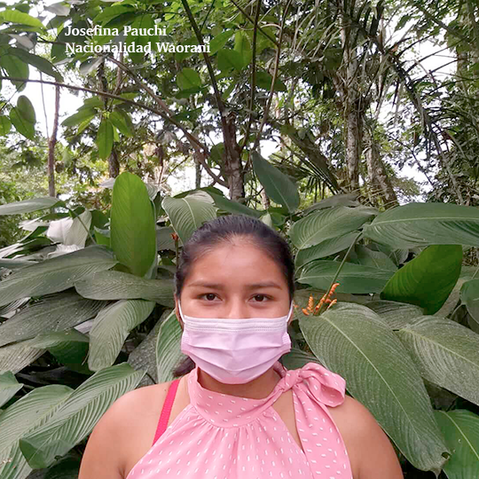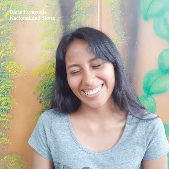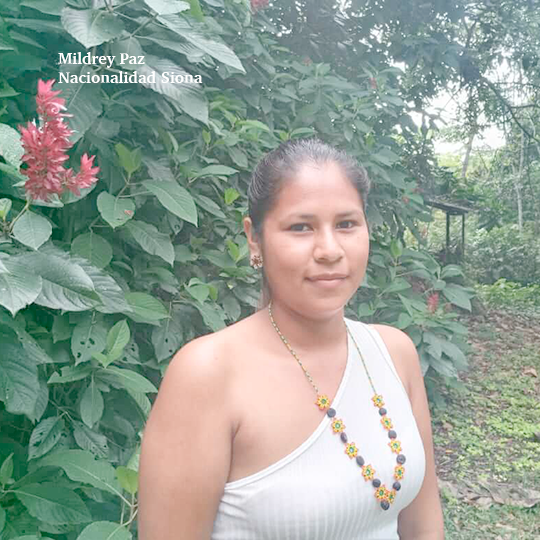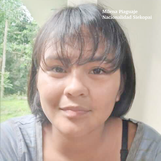 “Nosotras hicimos la historia Invasores porque entre nosotros en las nacionalidades ocurre eso, vienen los colonos, entran en nuestro territorio sin permiso, entran como si fuera de ellos, como si no le importara lo que tenemos nosotros dentro de la comunidad, por eso en mi grupo decidimos hacer una fotohistoria sobre eso. Nos imaginamos un personaje que se llama Ñumi, que vive en su territorio y tiene 35 años. Ella está felizmente trabajando en sus sembríos, pero se da cuenta de que han llegado personas de afuera para invadir su terreno. Ella no sabe qué hacer con los invasores y reaccionó fuertemente. Los enfrentó y logró desalojarlos”, Judy Payaguaje, Aneth Lusitande, Magdalena Quenamá, Morelia Mendua.