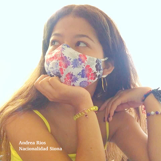 “La historia que nosotros hacemos es sobre el tema de la evangelización, eso pasó en todas las nacionalidades. A nuestro territorio vino primerito la evangelización y desde ahí nació la creación de escuelas en donde nosotros nos formamos y aprendimos la postura del mundo occidental. Esta es la historia de un personaje llamado Ana, que fue obligada a ir a la escuela de la misión. Sus padres le mandaron porque se sentían obligados, sin darse cuenta que pronto Ana iba a ser abusada sexualmente por los curas. Al enterarse sus padres la encierran en su casa. Y ya no mandaron a la escuela. Ella se había llenado de valor, pero al verse encerrada se veía como un animal enjaulado y acude con sus oraciones a los espíritus de la selva. Una noche escuchó la voz de la mujer espíritu de la cascada, que le dijo: «Sal. Anda, camina. Eres como una mariposa llena de colores alegres y sueños imparables. Puedes enseñar a otras mujeres lo valiosas que somos. Ana marchó lejos y con el tiempo se convirtió en una voz fuerte, y líder que junto a otras mujeres soñadoras luchan por su libertad y ahora nadie más será abusada. Nosotros escogimos este tema porque las mujeres fuimos atrapadas, humilladas, sin progresar, por eso el personaje es una mujer maltratada”, Beatriz Nawe, Tania Amwae, Tamara Alvarado, Daris Payaguaje.