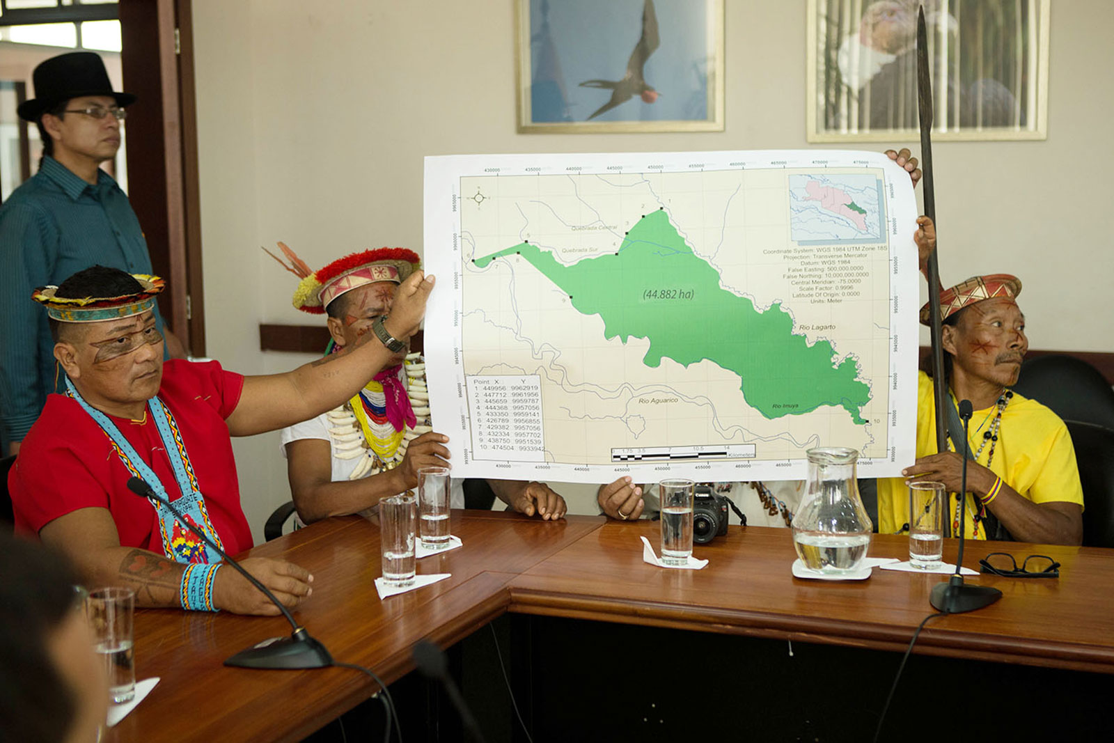 es nuestro territorio, nuestra sangre, nuestro lugar de nacimiento, la base de nuestra cosmovisión. Los huesos de nuestros antepasados descansan allí. Desde 2017, hemos exigido que el gobierno ecuatoriano nos otorgue la propiedad de estas tierras. Tenemos evidencia legal, geográfica y antropológica que demuestra que este territorio de 100,000 acres es nuestro. Hoy, solo quedan 600 Secoya en Ecuador y estamos en riesgo de desaparecer cultural y físicamente ”.