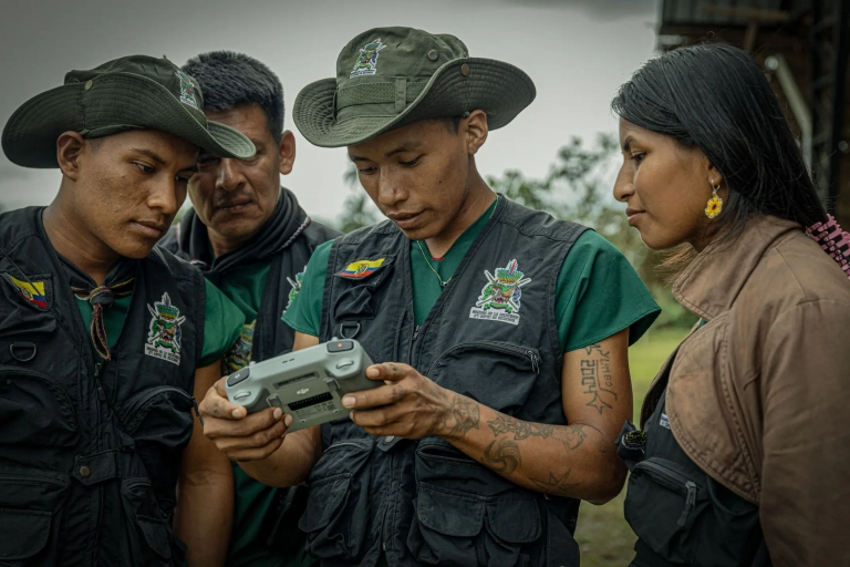Nuestro trabajo en Amazon Frontlines refleja estos hallazgos en dos documentos de investigación. Por ejemplo, la Nación Siekopai y sus guardias indígenas activos están en el proceso de completar un estudio de fondo sobre la biodiversidad que entrelaza su conocimiento ancestral con metodologías científicas. Este estudio formará una base y una guía para sus procesos de gobernanza territorial, así como también creará un conjunto de reglas para cohabitar con la biodiversidad con la que ellos comparten sus territorios, y para coordinar acciones para asegurar que los impactos invasivos del mundo extractivo no causen discordias en su territorio. Este es un ejemplo de cómo las comunidades indígenas pueden aplicar una forma activa y efectiva de defensa territorial y conservación de la biodiversidad cuando sus instituciones gobernantes y sus derechos territoriales son respetados, mantenidos y practicados libremente bajo su autoridad cultural.
