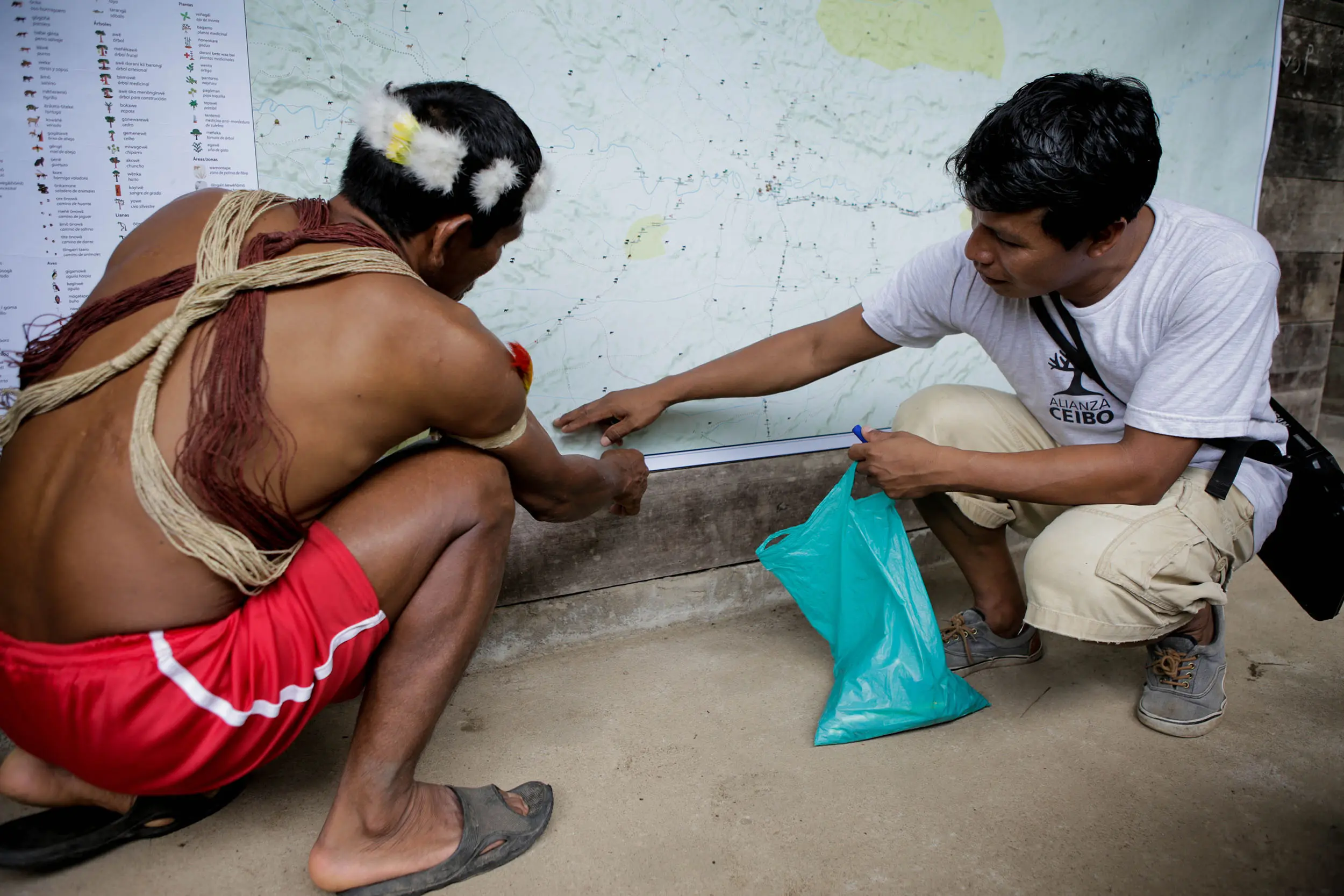 Los ecosistemas son parte nuestra y nosotros somos parte de ellos. El territorio para nosotros es un todo. Por esa razón estamos haciendo nuestros propios mapas, en los que se ve un territorio vivo, lleno de riquezas naturales, culturales e históricas. Estos mapas muestran los caminos de cacería, las plantas medicinales, las guaridas de los animales, los pueblos antiguos y los lugares sagrados. Con ellos contaremos nuestra propia historia y compartiremos con las comunidades para saber cómo proteger el territorio.
