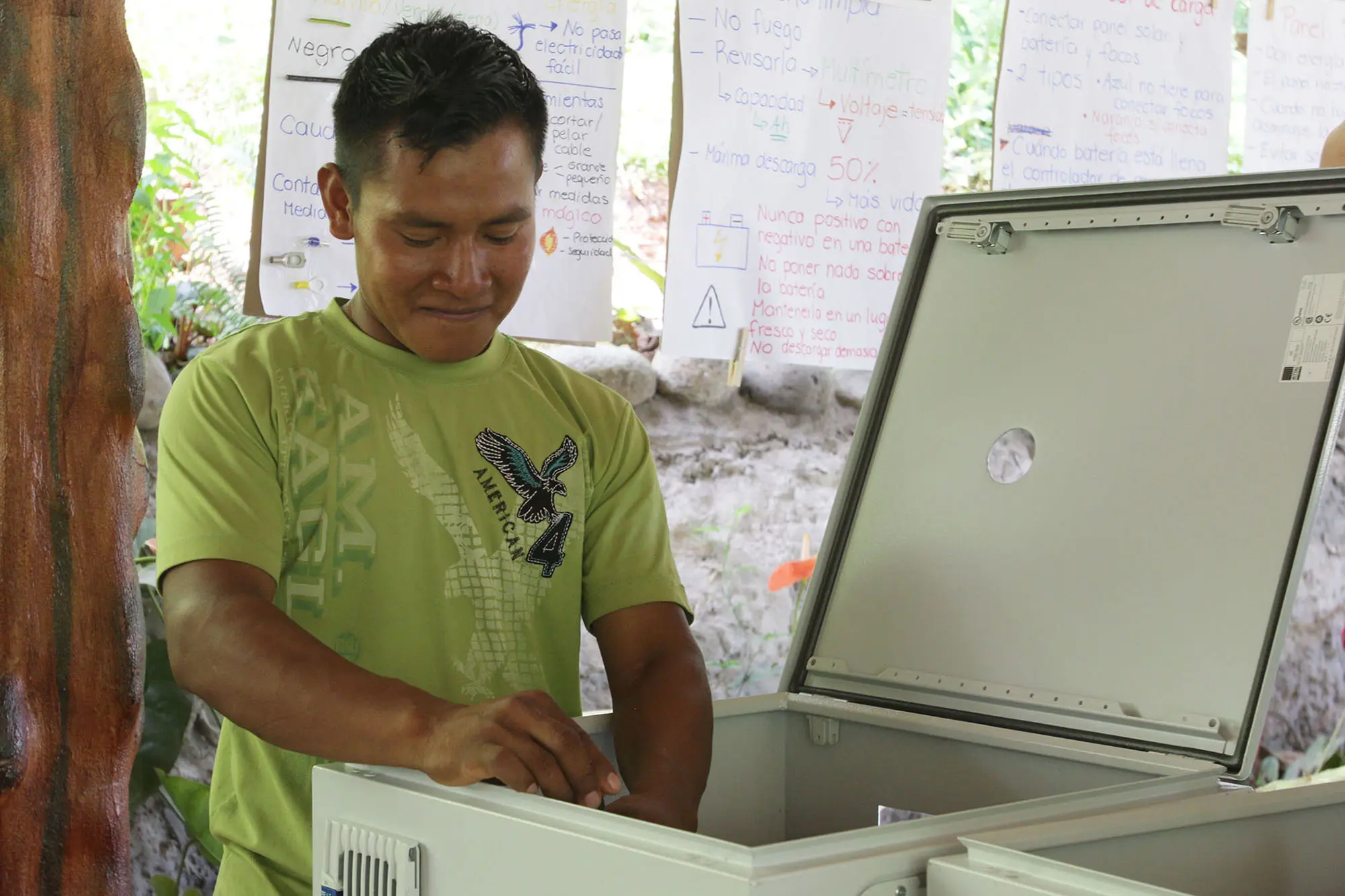 Si usamos la energía que el sol nos da, podemos aliviar esta necesidad de una forma limpia y sostenible. Con la fundación Love for Life, de Alemania, estamos participando en la instalación de 44 sistemas de energía solar en cinco comunidades, y programamos continuar con la iniciativa en los años que vienen. En 2017, vamos a instalar 120 sistemas de energía solar. Esto nos permitirá depender menos de la ciudad y de las compañías petroleras, y apoyará a la autonomía de las comunidades.