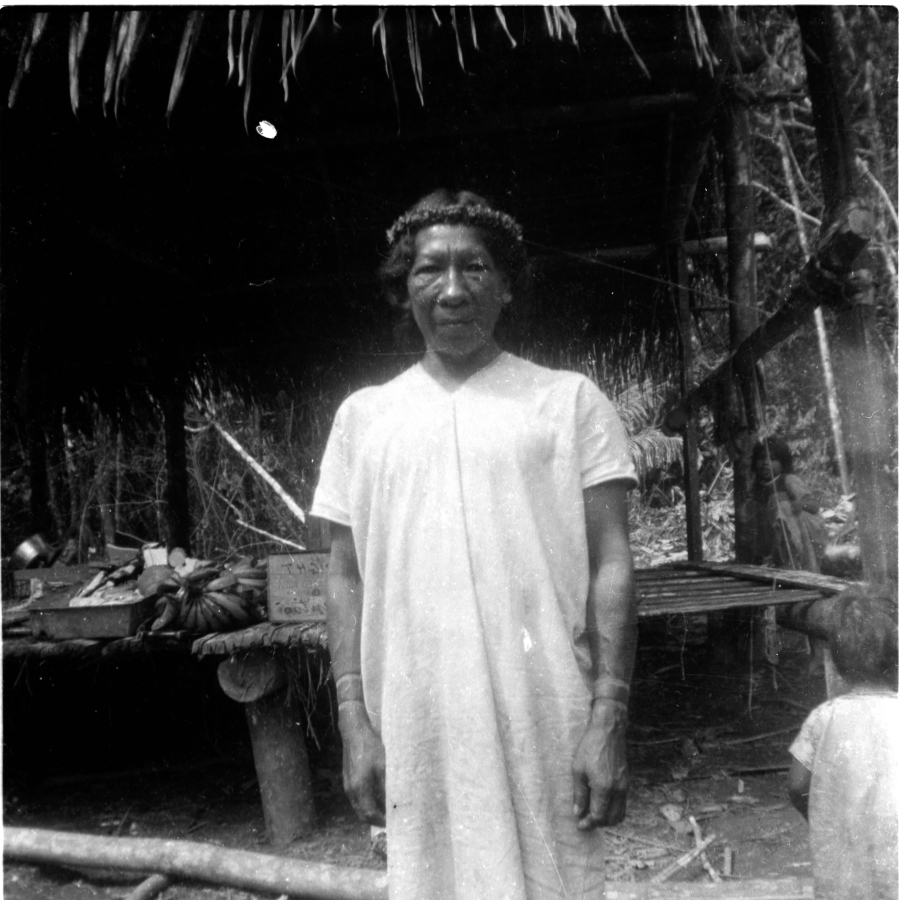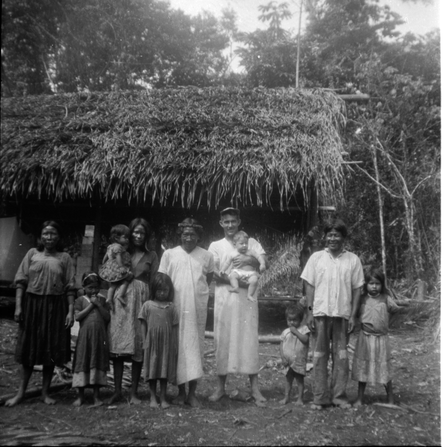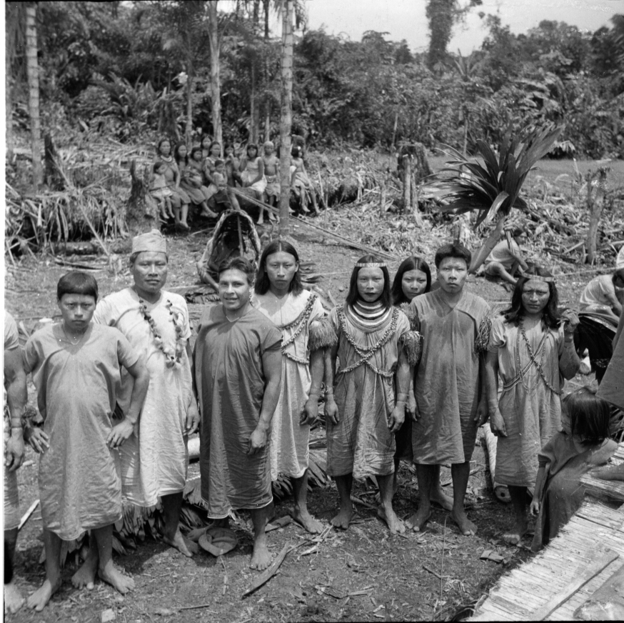 Foto 1 (izq): Comunidad Siekopai con el misionero Orville Johnson, del ILV. La evangelización puso en peligro nuestra cultura. Foto 2 (der): Fernando Payaguaje, último sabio bebedor de yagé de los Siekopai. Autor: Instituto de Lingüística de Verano
