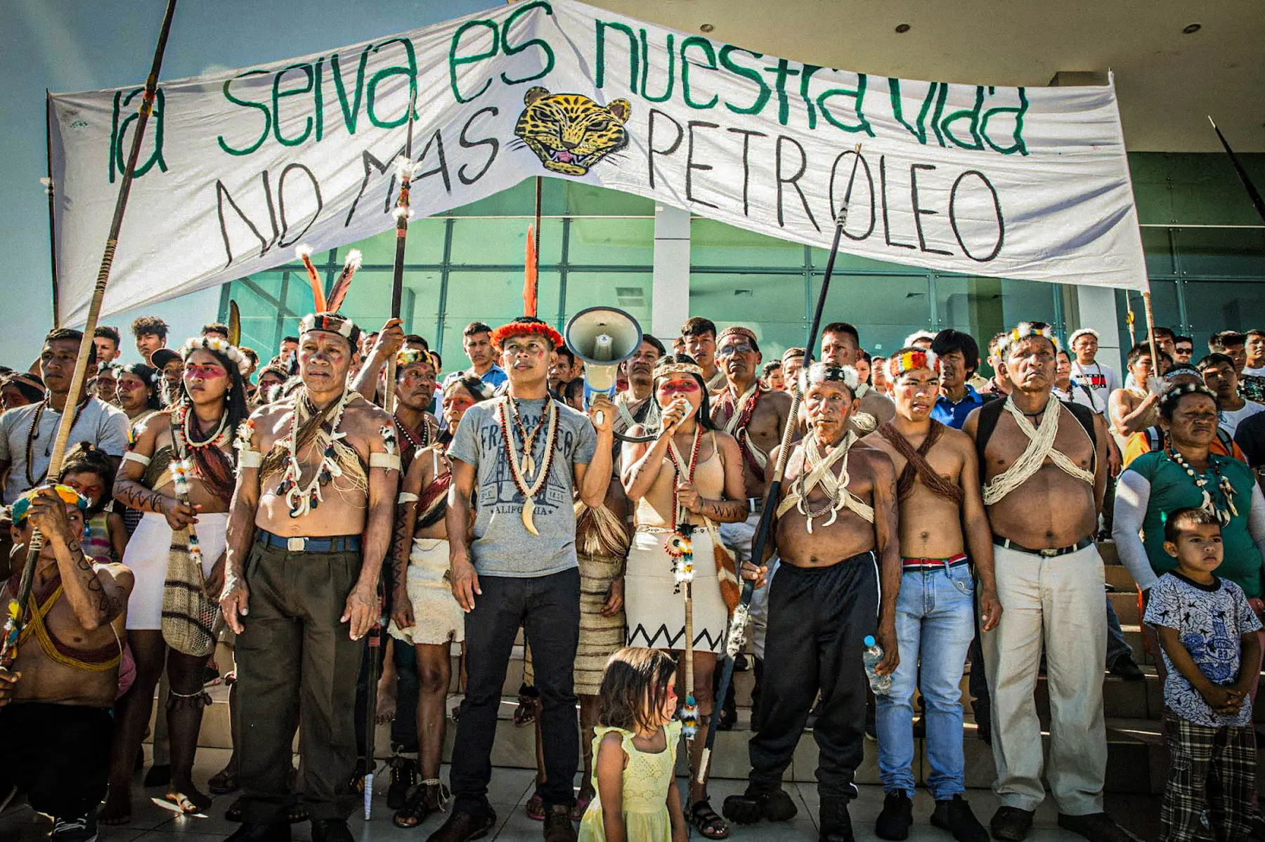 El cambio climático también está transformando rápidamente a la Amazonía, intensificando el riesgo de sequías e incendios forestales, elevando las temperaturas y desestabilizando los ciclos de vida. Muchos animales están sufriendo las consecuencias del estrés térmico, lo que se vio más claramente el año pasado en la mortandad masiva de peces amazónicos y delfines de río en toda la baja Amazonía. A menos que se tome una acción urgente para hacerle frente a esta crisis planetaria, la Amazonía enfrenta un horizonte brutal de calentamiento y desertificación, incluso su colapso. Como dice Mitch Anderson, cofundador y director de Amazon Frontlines: “Estamos en una encrucijada: dejamos que los negocios como siempre consuman la Amazonía y con ella el planeta entero, o bien, damos la lucha por nuestras vidas y nuestra dignidad.”