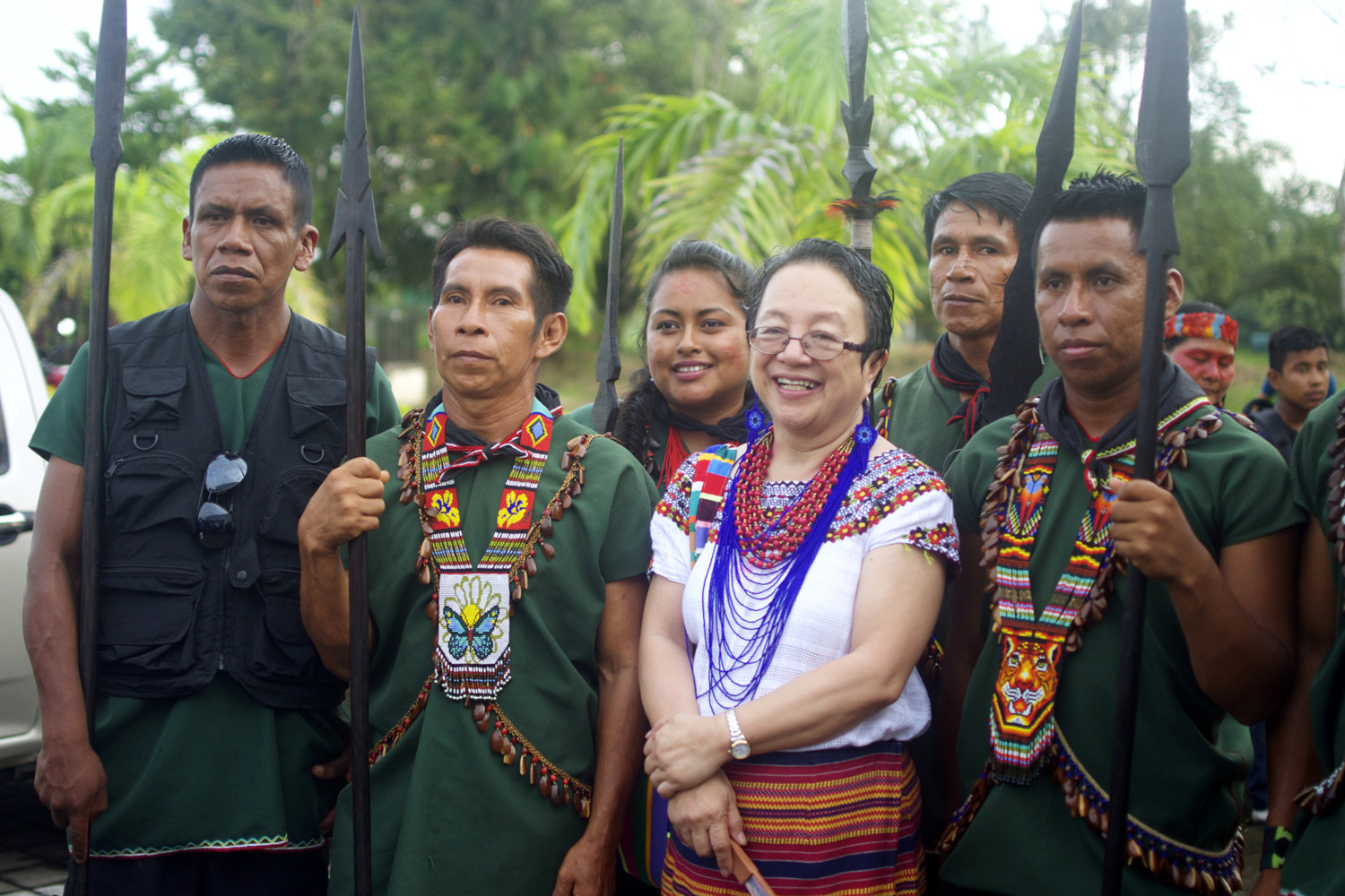 Hace unas semanas, nos hemos encontrado con la Relatora Especial de las Naciones Unidas sobre los derechos de los pueblos indígenas durante su visita en Ecuador. Hemos insistido en que el Estado no está reconociendo nuestros derechos, como Kofanes, hacia nuestros territorios. El Estado viola nuestros derechos. Necesitamos que el Estado garantice nuestros derechos por medio de títulos de propiedad. También hemos manifestado que el Estado tiene que reconocer a la guardia indígena como guardianes de los territorios ancestrales para la protección de la selva y de la biodiversidad, porque el Estado ha sido incapaz de hacerlo hasta ahora. Nos han llamado “paramilitares”, “grupos milicianos”, “cómplices de los mineros” pero la Relatora ha conocido a la guardia y ha ido entendiendo cuál es la estructura de la guardia y cómo va a ser la protección de nuestros territorios: con respecto, fuerza, y con amor en el corazón.
